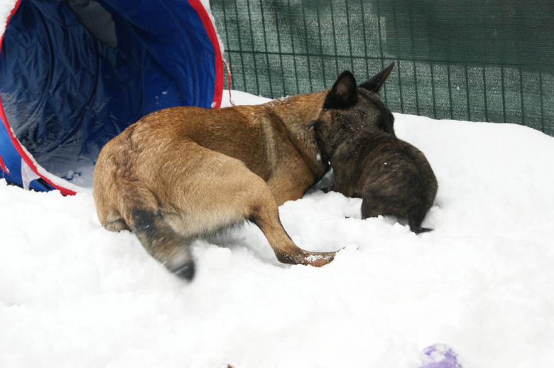 Aber es läuft leider nicht alles super - aufgrund von Cubas Erkrankung (Tetanus) und der notwendigen Trennung von den Welpen muss Mamba als Tante für die Bespaßung der Welpen herhalten. Das macht sie wirklich super, ich bin begeistert, wie vorsichtig sie mit den Minis tobt und schmust. Natürlich hoffe ich sehr, dass es Cuba bald wieder besser geht und sie wieder zu den Zwergen darf!!